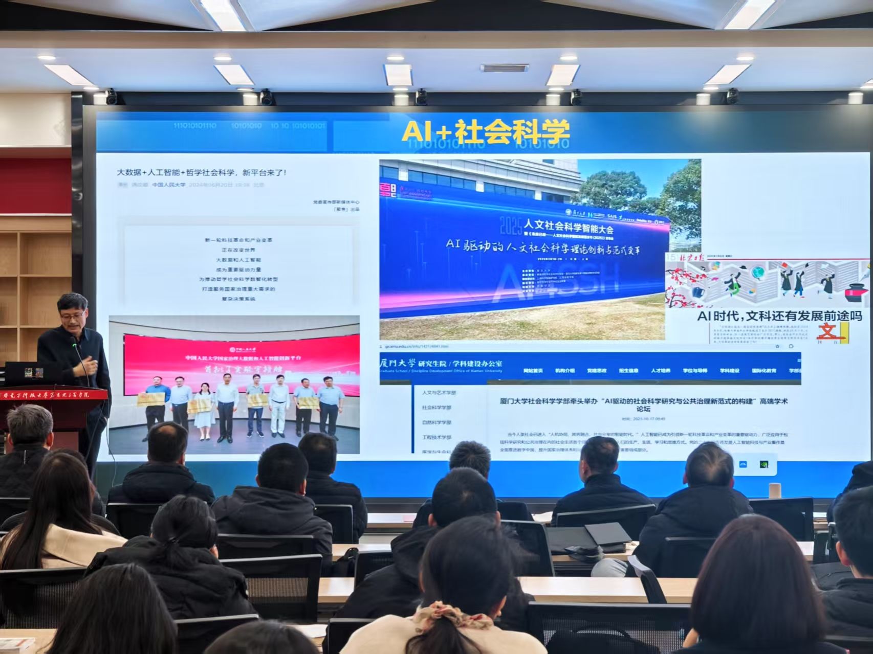 本次培训围绕DeepSeek大模型的部署与应用展开,旨在通过前沿技术提升思政课教学质量,探索大模型在思政教育领域的应用新路径。学校高性能计算(专用超算)中心、人工智能学院朱虎明老师从AI技术基础出发,概述了DeepSeek技术的发展历程,详细介绍了DeepSeek作为新一代大语言模型的强大功能与特性。他表示,人工智能技术是引领新一轮科技革命和产业变革的重要驱动力量,算力是新质生产力核心引擎,相信DeepSeek大模型的深度应用与融合能够为学院的思政课教学与研究注入新动力。在实操环节,专业人员向参训教师们演示了DeepSeek大模型与DIFY知识库的搭建流程。他们通过导入各种类型的文档,成功构建了本地化的专属知识库,现场测试了模型对问题的回答效果,并就教师们遇到的实际问题进行了答疑解惑。