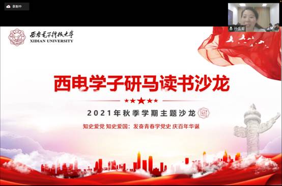 (通讯员 彭岗岗 刘桐宇 孙金菊)20211210日下午,由yl23455永利集团主办,竹园三号、海棠一号、海棠二号书院合办的西电学子研马读书沙龙本学期总结活动在线上成功开展。至此,以“知史爱党、知史爱国:发奋青春学党史庆百年华诞”为主题的该读书沙龙本学期活动圆满结束。马院党委书记夏永林、本科生院教学发展中心主任杨明磊、海棠2号书院副书记马慧出席活动。学院及书院部分教师、研究生和本科生共230余人参加了本次活动。活动由马院孙金菊老师主持。