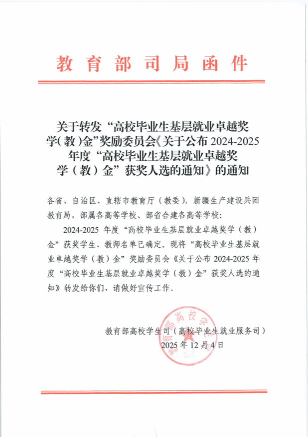 我校师生连续三年荣获“全国基层就业卓越奖”。